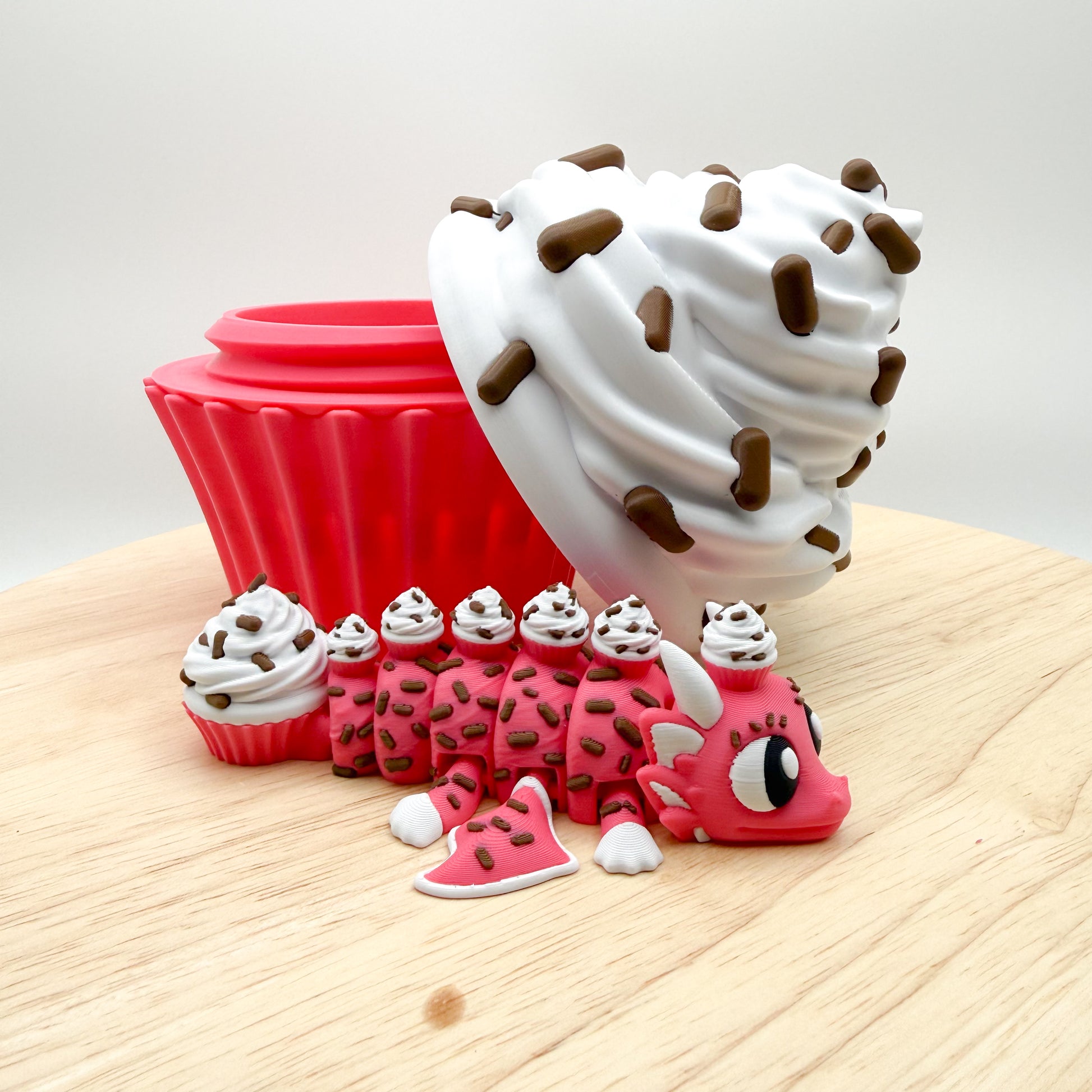 Large 3D Printed Dragon Cupcake. Approx 6” tall! Comes with cupcake dragon inside.